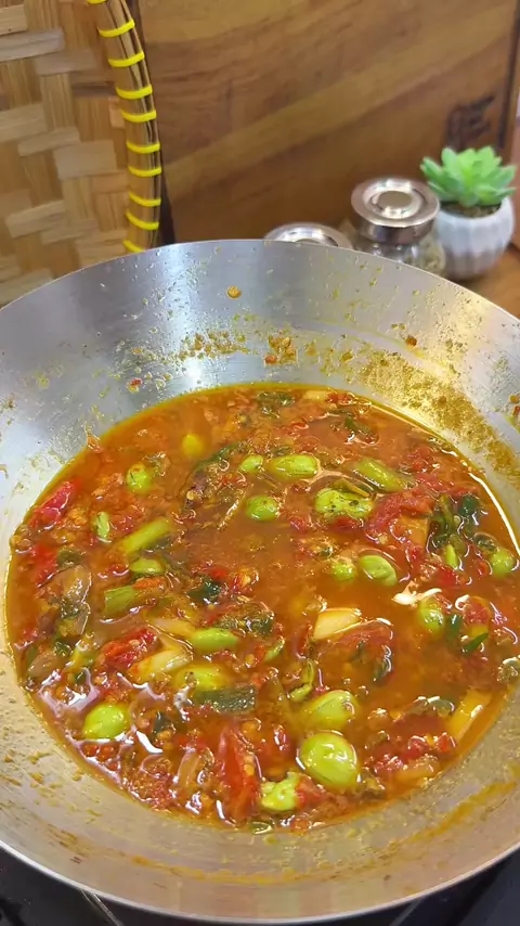 Bahan-bahannya: • 5ekor Ikan Kembung (boleh diganti dgn ikan jenis lain) • Biji Pete sesuai selera • 150ml Air • 2btg Daun Bawang • 1 buah Tomat (potong-potong) • Minyak Goreng • Garam dan Penyedap (sesuai selera) boleh di skip Bahan yg di giling: • 1 ons Cabe Merah • 1/2 ons Cabe Hijau • 8 siung Bawang Merah