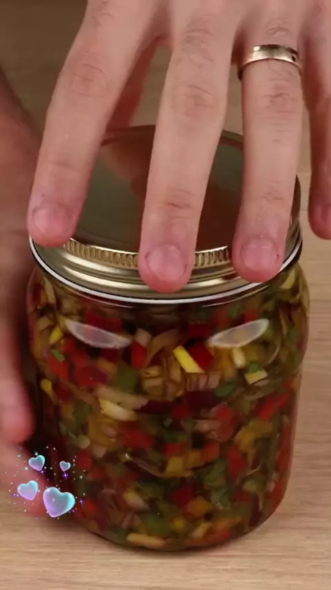 Receita completa: 1 pimentão amarelo 1 pimentão verde 1 pimentão vermelho 8 dentes de alho 1 cebola roxa Salsinha a gosto 1 colher de chá de orégano 1 colher de chá de sal 1 pitada de pimenta do reino Misture tudo e coloque em um pore com tampa, coloque azeite até cobrir tudo, deixe descansar por 24h e depois aprecie ☺️☺️ #receitas #caseiro #feitoemcasa