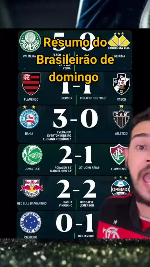resumo do Brasileirão de domingo #FLAMENGO #vasco #Futebol #Brasileirão #Bahia