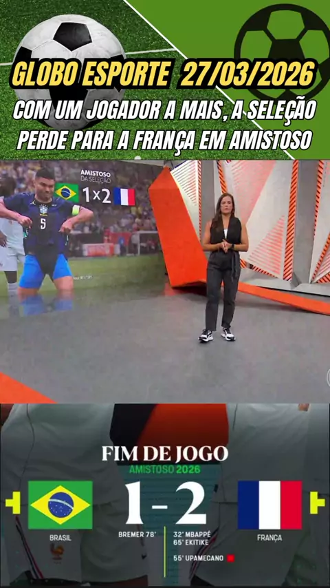 Globo Esporte 27/03/2026 COM UM JOGADOR A MAIS, A SELEÇÃO PERDE PARA A FRANÇA EM AMISTOSO #seleçãobrasileira #brasilXfrança #amistoso #futebol #esporteviral