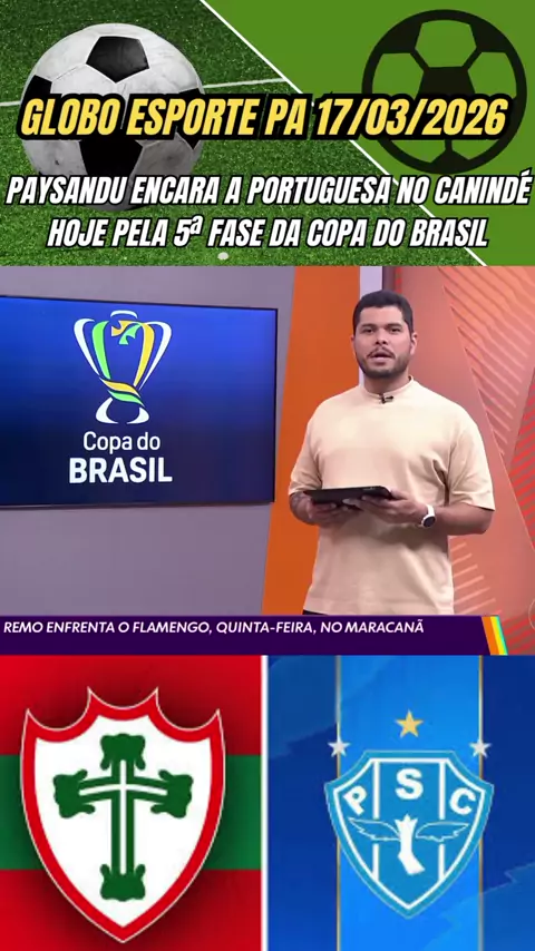 Globo Esporte PA 17/03/2026 Paysandu encara a Portuguesa no CanindΓ© hoje pela 5Βͺ fase da Copa do Brasil #CopadoBrasil #Paysandu #PortuguesaSpxPaysandu #futebol #esporteviral