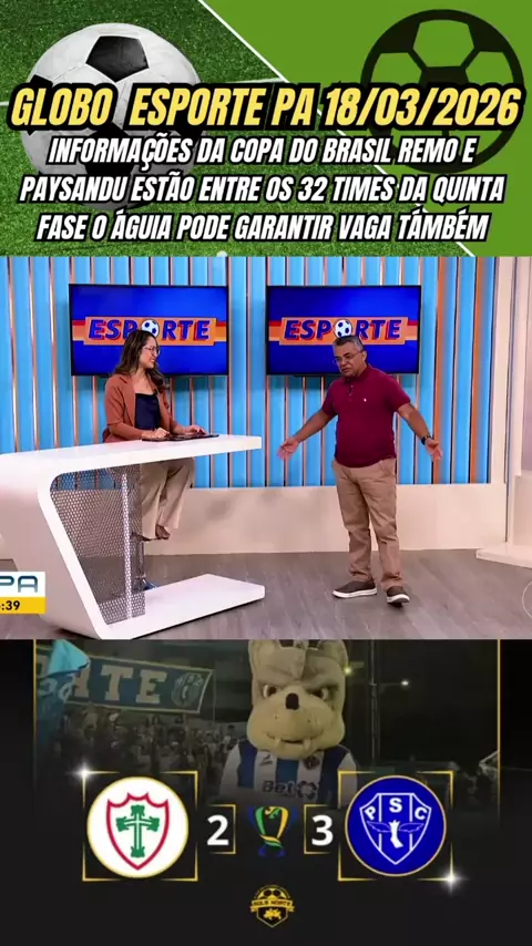 Globo Esporte PA 18/03/2026 informações da copa do brasil remo e paysandu estão entre os 32 times da quinta fase o águia pode garantir vaga támbém #copadobrasil #Paysandu #PortuguesaSpxPaysandu #futebol #esporteviral