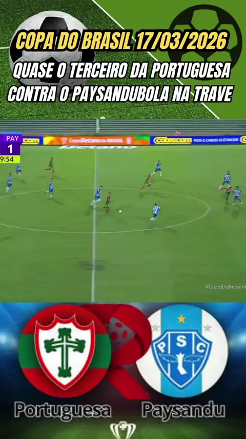 Copa do Brasil 17/03/2026 quase o terceiro da portuguesa contra o paysandubola na trave #copadobrasil #Paysandu #PortuguesaSpxPaysandu #futebol #esporteviral