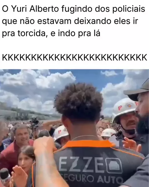 O Yuri Alberto fugindo dos policiais que não estavam deixando eles ir pra torcida, e indo pra lá KKKKKKKKKKKKKKKKKKKKKKKKK #copadobrasil #corinthians