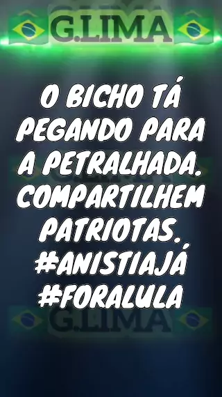 #ANISTIAJÁ🇧🇷🇺🇸 AMPLA, GERAL E IRRESTRITA.NÃO EXISTE DOSIMETRIA ,ANISTIA LIGHT OU QUALQUER OUTRO NOME QUE QUEIRAM INVENTAR PARA DEIXAR INOCENTES COMO PRESOS POLÍTICOS. #BOLSONARO2026🇧🇷 #DEMITAEXTREMISTAS #DEMITACOMUNISTAS #FORALULA @✡️🛡⚔️🕎GUARDIÃO🕎⚔️🛡✡️.(O150001637464342) @Mana(O150001053484751) @SANTINA MACEDO.OFICIAL(O150001377819616) @LUCINHA(O150000165401118) @Andreia Rodrigues(O150001400753721) @mimos_loja_oficial(O150001328447286)