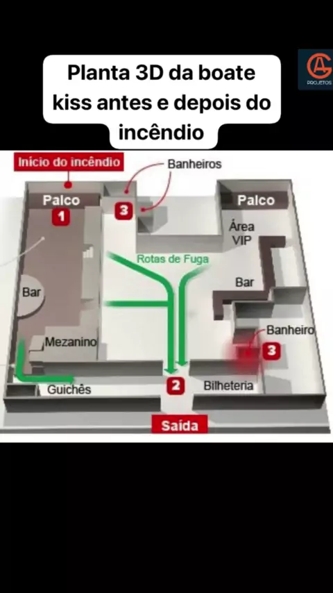 Planta 3D da Boate kiss antes e depois do incêndio #BoateKiss #incendio #Fogo #tragedia #segurança