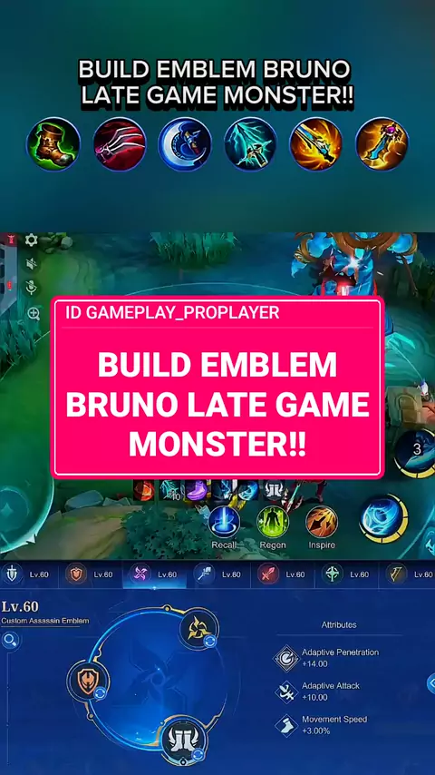 BUILD EMBLEM BRUNO LATE GAME MONSTER!! #MabarDiSnack #buildmlbb #Build #Bruno #brunomlbb