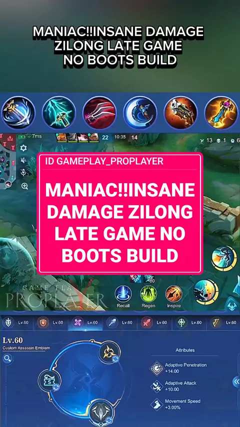 MANIAC!!INSANE DAMAGE ZILONG LATE GAME NO BOOTS BUILD #Build #MabarDiSnack #mlbbcreatorcamp #creatorML #zilongMLBB