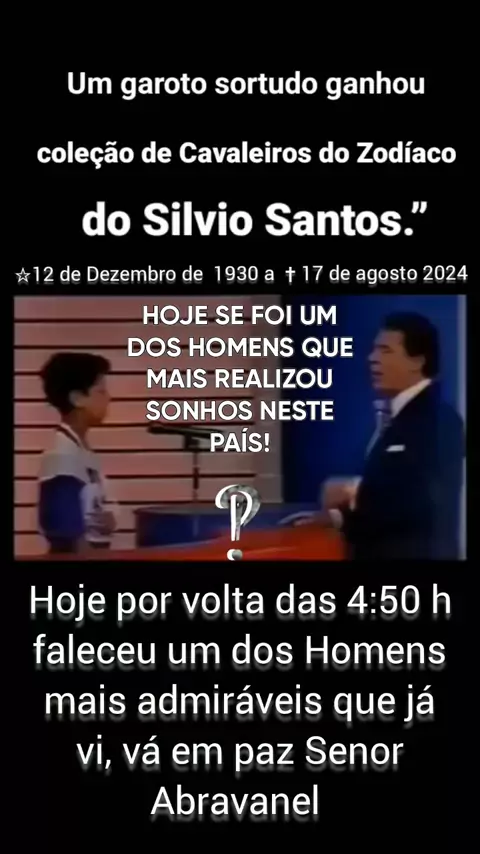 Hoje se foi um dos Homens que mais realizou sonhos neste paΓ­s ! #LuTo #SilvioSantos #topz #viraliza