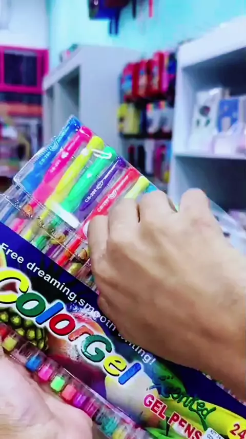 Caneta em gel com glitter.
