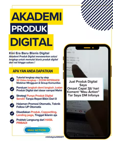 STEP BY STEP JUALAN PRODUK DIGITAL FREE LISENSI KOMISI 100RIBU SAMPAI 120RIBU PER PRODUK AUTOMATIS FOLLOW UP HALAMAN PROMOSI AUTOMATIS WEBINAR MINGGUAN GROUP KOMUNITAS TANPA MIKIR BIKIN PRODUK DARI NOL DISIAPKAN COPYWRITING LANDING PAGE DIAJARIN NGIKLAN TINGGAL TEST NGIKLAN Koment "MAU ACTION" Ntar Saya DM infonya #akademiprodukdigital #godigitalsmart #cuanprodukdigital