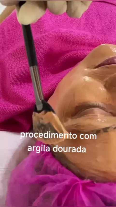 procedimento de limpeza de pele com argila dourada. vamos remover células e deixar sua pele renovada