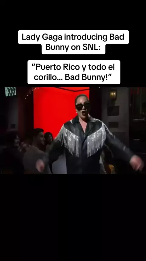 Lady Gaga introducing Bad Bunny on SNL: “Puerto Rico y todo el corillo… Bad Bunny!” ️#b#badbunnyb#badbunnyprb#benitos#sanbenitob#badbunnypr_oficialb#badbunnyprtb#badbunnyprb#badbunnyconcertb#badbunnyfansb#benitofansb#badbunnyedits#b#badbunnytrapk#kendalljennerb#badbunnykendalljennert#theweekndt#tainya#arcangeln#nattinatashad#daddyyankeeh#harrystylesj#jbalvini#ivyqueent#travisscottk#karolgf#feidf#ferxxob#beckygr#rihannar#rosaliar#rauwalejandrod#dualipan#nickiminajr#romeosantosm#ma...
