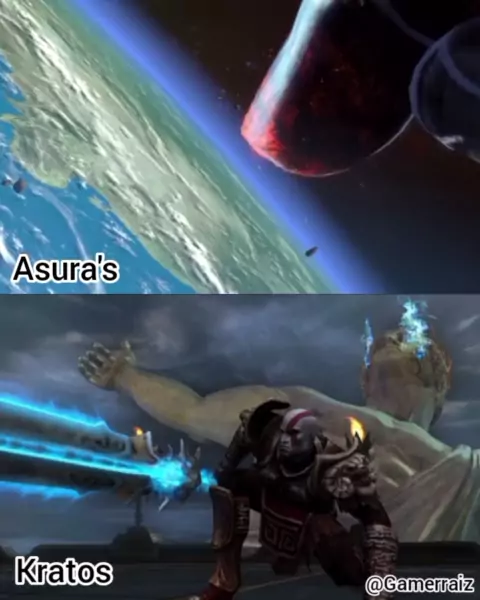 #EstrelaDeFamília #games #GodofWar asura's e kratos parando um gigante kkk