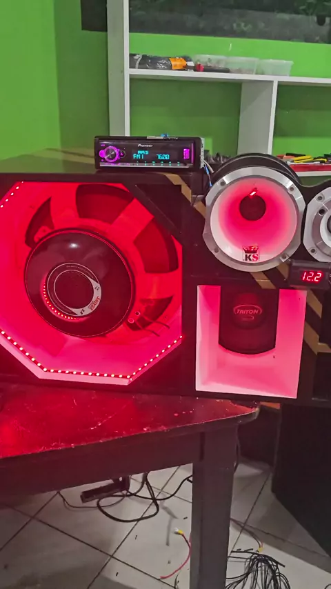 trio disponível no valor de $4500. 1 grave shiver 3.8 1 medeio triton 1 driver eros 4160 1 super tweter 1 pioneer x3000br 1 forca 3000.1 1 forca 800.4 1 processador 2448 1 fonte 60a 1 bateria 150a material semi novos. caixa toda no led nova. #maisviews #viraliza #graveforte #AFazenda17