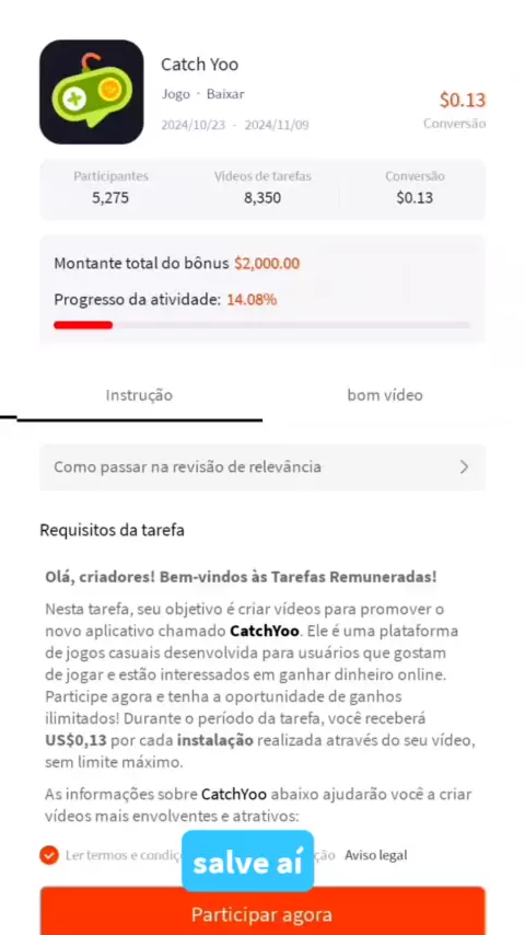 Catch Yoo Nova plataforma para ganhar dinheiro. Clica no canto inferior e baixe. #CatchYoo