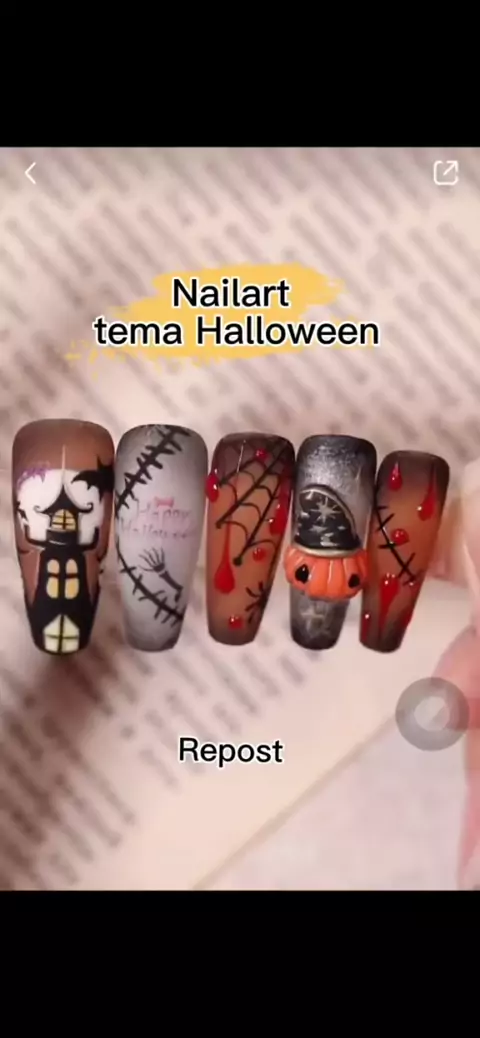 Tutor Tema Halloween yu..#nails#nailart#tutorial#kuku#art#halloween#halloween2023#kutek#catkuku#gelpolish#uvgel#tutorial#nailart#nailstutorial##viral##extensions
