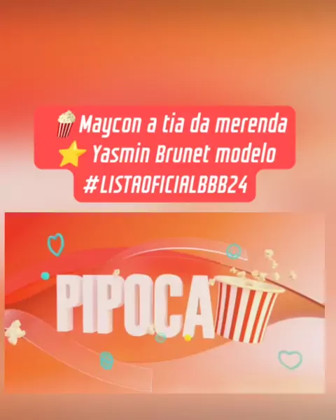 🍿 PIPOCA: MAYCON é a tia da merenda e é o cara mais feliz do mundo. ⭐ CAMAROTE: YASMIN BRUNET começou a trabalhar novinha e vai se descobrir e se conhecer junto com a gente lá no #BBB24