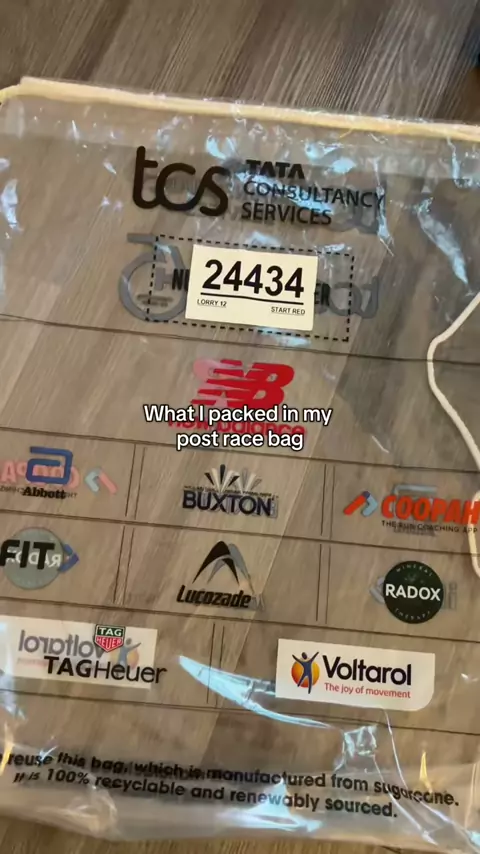Here is what I packed in my post race bag. - finisher tee - recovery slides @OOFOS - spare socks - @drinkhyro hydration - Panadol - bandaids - haribo sweets - favourite chips - coke (the hard stuff) - power bank Not pictured is baby wipes, deodorant and a long sleeve tee.#londonmarathon