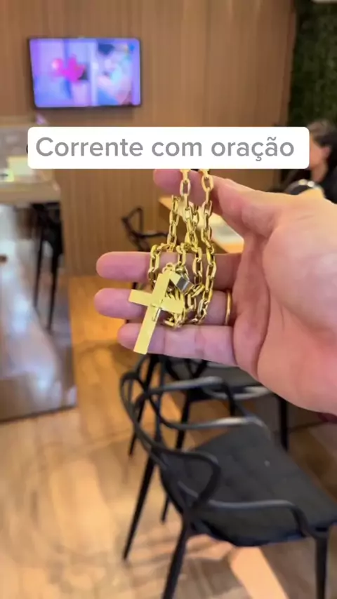 Corrente Cordão Masculino aco inox Banhado ouro 18k Cruz 3 D #Corrente #Cordão #Masculino #ouro #oração