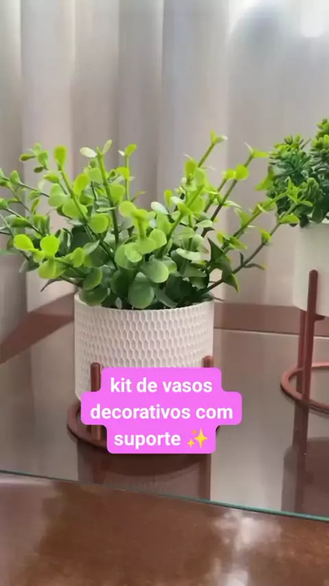 kit 3 vasos decorativos mini com suporte ✨ #decoraçao #vasos #plantaartificial #achadinhos #decorando