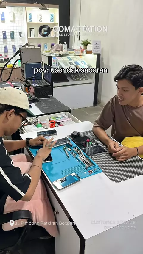 ‼️BESABAR DIKIT KAK😭‼️Hallo lur! butuh service iphone yang cepat, tepat terpecaya?📱 Kunjungi tempat service iphone terbaik anda hanya di gomestation Applestore & service Palembang. ✅FREE KONSULTASI ✅Part terjamin original ✅bisa di tunggu ✅pengerjaan cepat ✅garansi 1 tahun #servisiphonemurahpalembang #macbookpalembang #ipad #macbook #gomestation