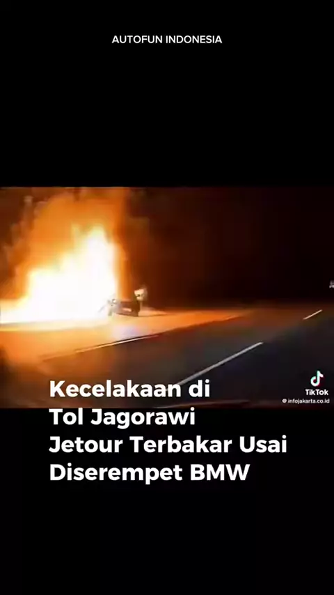 Sebuah kecelakaan lalu lintas terjadi di KM 31 Tol Jagorawi arah Jakarta yang melibatkan SUV Jetour dan sebuah mobil BMW. Insiden ini terjadi pada Minggu malam (1/2), dan berujung pada terbakarnya Jetour sesaat setelah tabrakan terjadi. Menurut keterangan Kepala Induk PJR Tol Jagorawi, Kompol Akhmad Jajuli, kecelakaan bermula ketika mobil BMW yang melaju di lajur kedua berupaya menyalip Jetour dari sisi kiri. Dalam manuver tersebut, BMW menabrak bagian kanan Jetour hingga membuat SUV tersebut t...