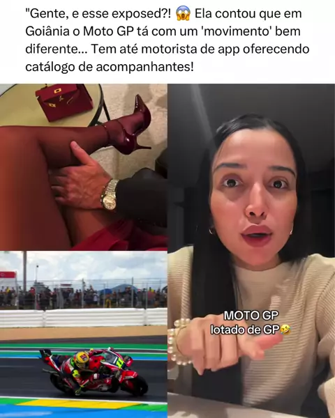 SOCORRO! 🚨 A influenciadora soltou o verbo sobre o que está rolando nos bastidores do Moto GP em Goiânia. Segundo ela, a cidade virou um verdadeiro catálogo! O marido quase caiu na cilada do Uber... 👀 Fica o alerta pras comprometidas: olho aberto que o perigo mora ao lado (ou no banco de trás)! 🏍️💨 #MotoGP #Fofoca #Goiânia #Babado"