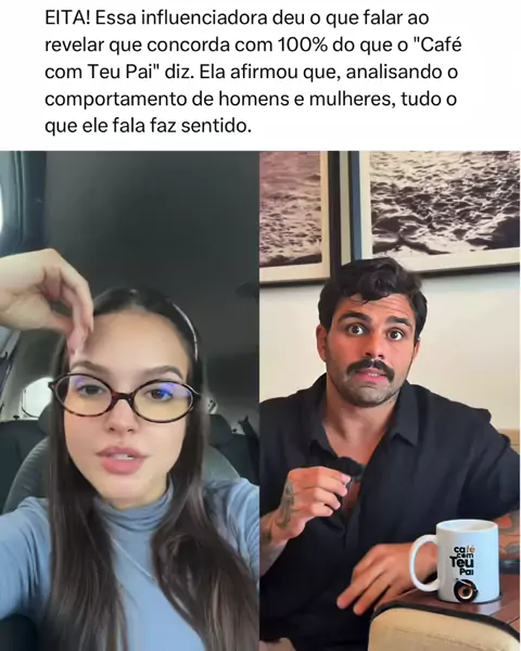 EITA! Essa influenciadora deu o que falar ao revelar que concorda com 100% do que o "Café com Teu Pai" diz. Ela afirmou que, analisando o comportamento de homens e mulheres, tudo o que ele fala faz sentido.