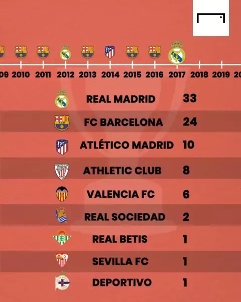 A linha do tempo dos campeões de LaLiga! 🏆 O Real Madrid comemora mais um título e abre vantagem no topo! 💪 #realmadrid #laliga #Futebol #GoalBrasil #futebolinternacional