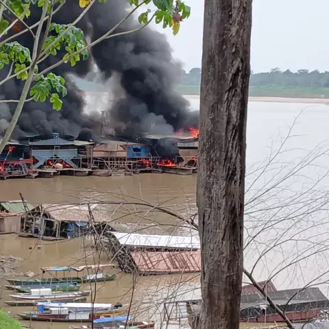 hoje a cidade de humaita amanheceu sobre forte ataque da polícia Federal força Nacional sobre apoio da PRF e Pms tudo pra destruir balsas e atacar a população