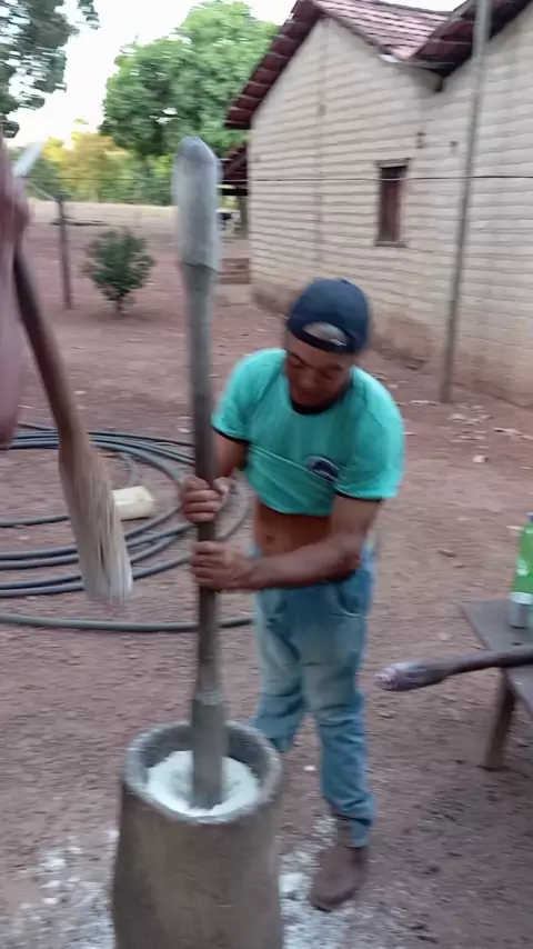 Na casa do meu padrinho socando arroz pra fazer o bolo de arroz....