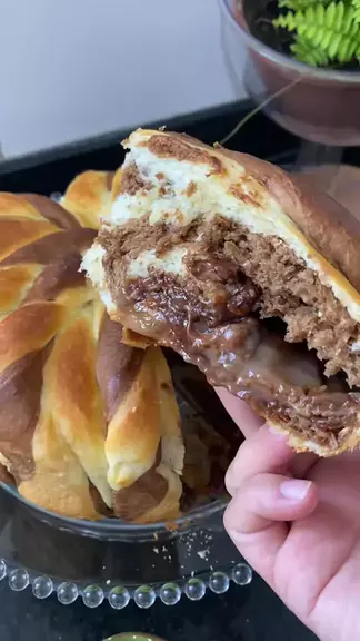 Pão de batata 2 batatas médias cozidas 1 xícara de leite 1/2 xícara de óleo 1/2 xícara de açúcar 1 ovo 10 gr de fermento biológico seco 1 colher de café de sal 5 xícaras de farinha para dar o ponto 1 gema para pincelar Gergelim a gosto Assar 35 minutos a 180 graus ou até os pães ficarem bem douradinhos