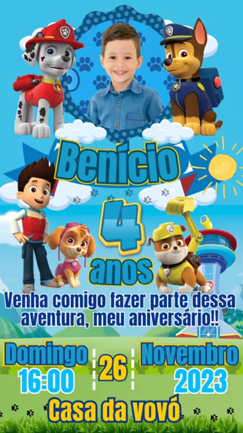 Convite Digital Animado tema Patrulha Canina #PatrulhaCanina #Ofazendeirodokwai #convitedigital #Convite #aniversário
