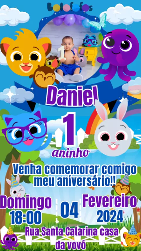 convite Digital animado tema bolofofos #bolofofos #aniversário #1aninho #Convite #convitedigital