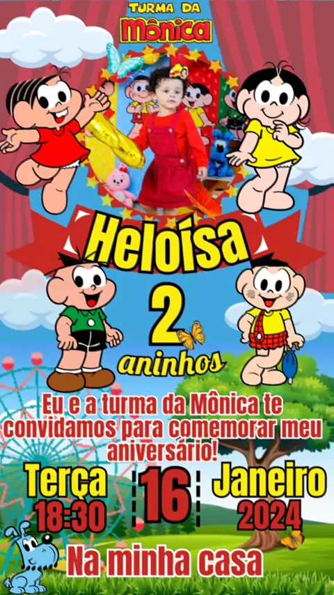 convite digital animado tema Turma da Mônica #TurmaDaMonica #convitedigital #aniversário #1aninho #fyyy
