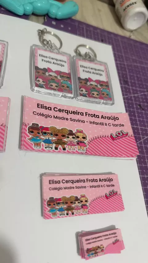 Chaveiros e adesivos escolares Personalizados com nome, escola, ano e turma.