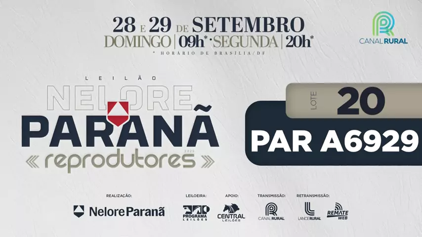 🚨 ESTÁ CHEGANDO 🚨 🔨 LEILÃO NELORE PARANÃ - Reprodutores - @grupoagroparana @rodolfobilachiprado 🗓 28 e 29 de Setembro - Domingo às 09:00hs e Segunda às 20hs 📺 Transmissão: Canal Rural, Lance Rural e Remate WEB 🔨 Leiloeira: Programa Leilões e Central Leilões 🚚 Frete Grátis: Consulte condições 🍀 Informações e indicações de lotes: 011 95550 9178 ( Marcelo ) Lote 20: Nome: PAR A6929 Nascimento: 10/12/2023 Peso: 666Kg, CE: 36cm 🔝 Touro filho do Burgues FIV na Varanda Naviraí (