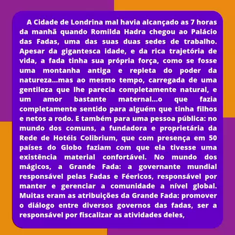 Amigos! Nesse ano, eu postarei contos simples com os personagens das Crônicas do Feiticeiro, mostrando-o nossos amados mágicos em situações do dia dia e fazendo mais ampliações, um esforço conjunto ao de A Odisseia de Vicente Syldk e O.M.I.S.E. Eu espero que gostem, e se gostarem, não se esqueçam de curtir, compartilhar e me seguir pra mais conteúdos ❤️ ---------------------------------------------------- #romildahadra #leandra #grandefada #palaciodasfadaa