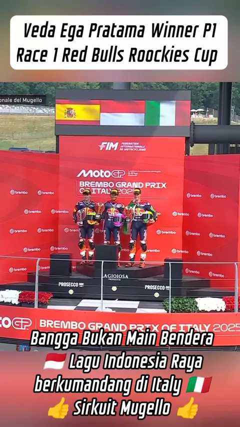 Pembalap Indonesia,ย Veda Ega Pratamaย sukses merebut kemenangan dalam balapan pertama (Race 1) Red Bull Rookies Cup (RBRC) Italia 2025 di Sirkuit Mugello pada Sabtu (21/6). Bangga Bukan Main ๐Ÿ‡ฒ๐Ÿ‡จ Lagu Indonesia Raya berkumandang di Italy ๐Ÿ‡ฎ๐Ÿ‡น Sirkuit Mugello Moto Gp 2025 ๐Ÿ‘๐Ÿ‘ #motogp #motogp2025 #vedaegapratamajuara1redbullsrookiescup #rbrc2025 #vedapratamareddbulaustria