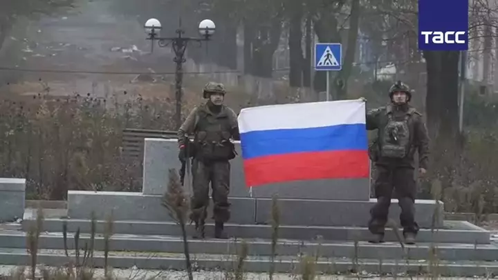 As Forças Armadas da Federação Russa hastearam bandeiras sobre arranha-céus na cidade de Selidovo, na região de Donetsk!