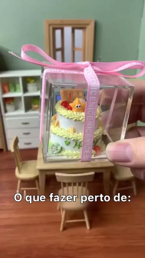 Mini Cozinha Mini Doces Dupla Camada Bolo de Aniversário # MiniCozinha # MiniFoodPlay # MiniatureScene