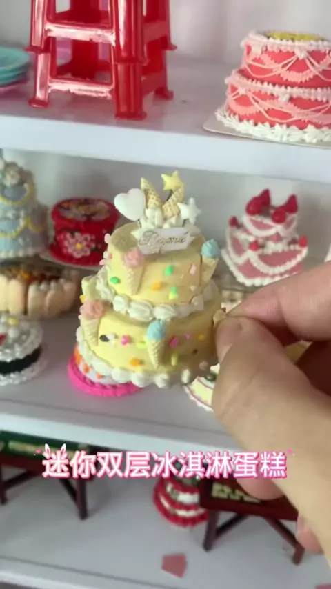 Mini cozinha com o menor bolo de duas camadas de sorvete # MiniKitchen # MiniFoodToys # MiniatureScene