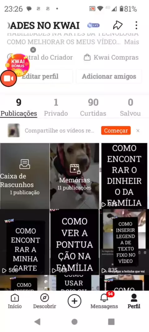 VOCÊ SABE COMO FIXAR O VÍDEO NO SEU PERFIL? NÃO ENTÃO VEM COMIGO #Habilidades #Edição #kwai #EstrelaDeFamília #facavocemesmo