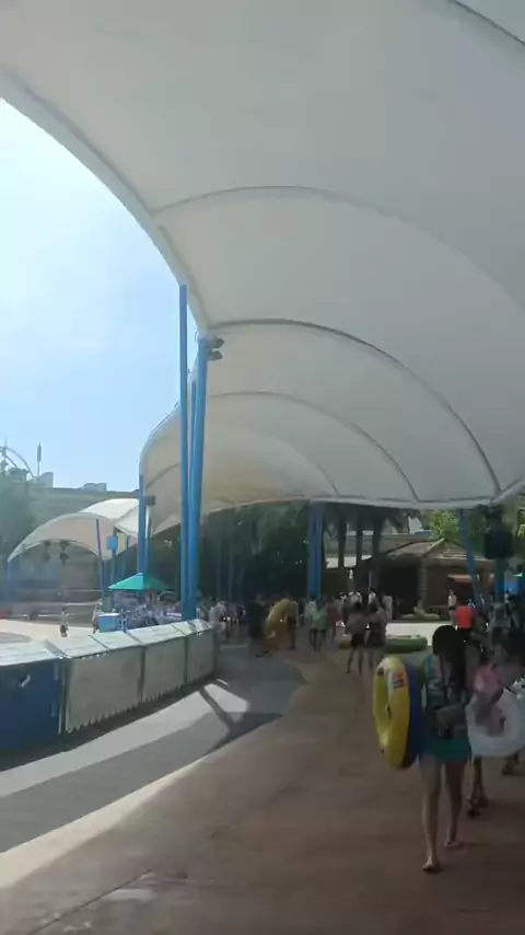 The sunshade equipment of water park with tensioned membrane structure is prefabricated in the factory, delivered by lightning, and easy to install. Feel free to contact me if you are interested:+8613376363139. #PlaygroundShade #MembraneBuild #FutureArchitecture
