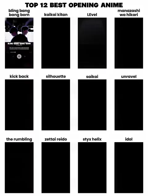 anime: - mashle - jujutsu kaisen - solo leveling - kaoru hana wa rin to saku - chainsaw man - naruto shippuden - hikaru ga shinda natsu - tokyo ghoul - attack on titan - wind breaker - re zero - oshi no ko