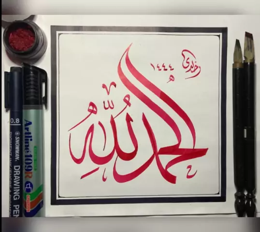 #kaligrafi #kaligrafiindonesia #TulisNama #alhamdulillah #bersyukur Menulis kaligrafi "Alhamdulillah" Khat Tsulust