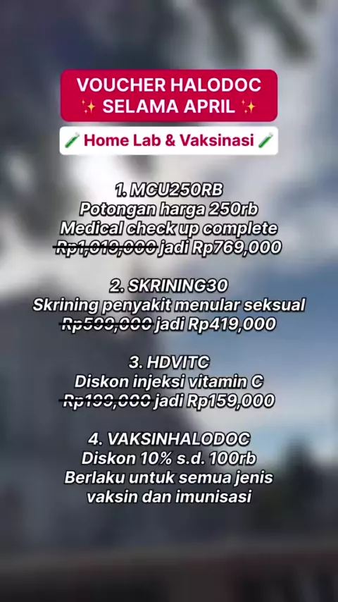 Jangan lupa rutin cek kesehatanmu dan lakuin vaksin dengan layanan Home Lab & Vaksinasi di Halodoc! Tenang, nih kita spill vouchernya~ #Halodoc #TenangMenjaga #infodiskon #homelabhalodoc #voucherhalodoc #kuponhalodoc #infokuponhalodoc #kuponhalodocapril #voucherhalodocapril #trend #video