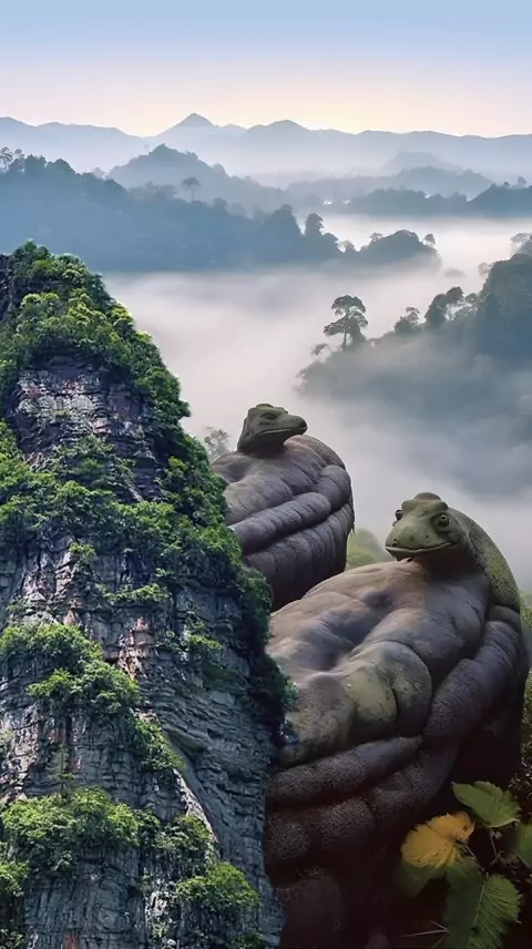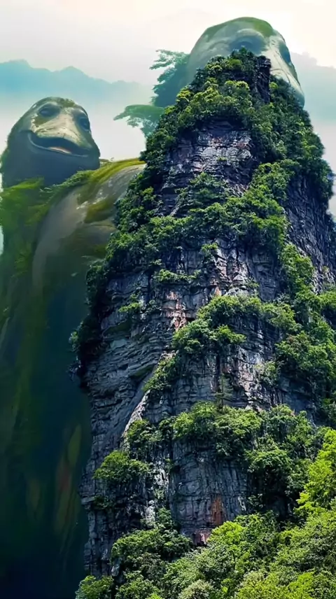 O "casal de baleias gigantes" fotografado na floresta em drone é dito ter sido um mar profundo onde muitos animais selvagens já viveram. "As baleias gigantes dos amantes" parecem estar de frente para o mar "esperando pelo renascimento da aura, elas vão acordar?" Eles estão esperando o despertar para salvar o oceano?