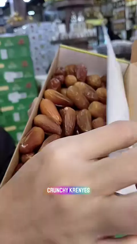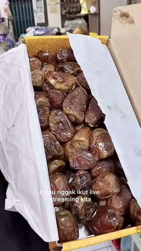 assalamu'alaikum bunda yu co kurma kering krancy tidak terlalu manis kemasan 500g.yu di co di live kita jam 9 pagi sampai dengan selsai#pestarasaakhirtahun #fokusibadahnyaoleholehkamiyangsediakan #pyfツviral_❤ #tunistangkai #elshanumgroup